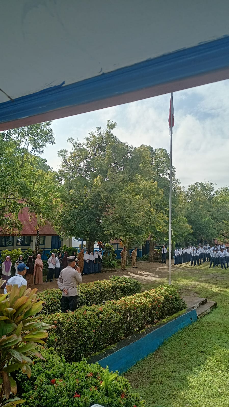 BONE – Wakapolsek Tellu Siattinge, Iptu Tajuddin, S.Sos. hadir di SMP Negeri 3 Tellu Siattinge selaku Pembina upacara.