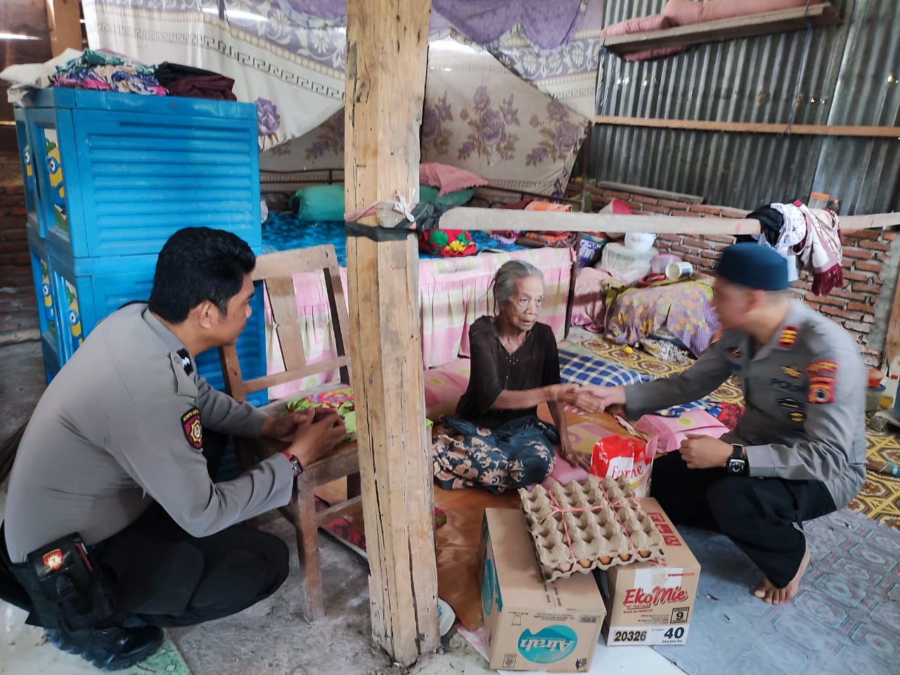 Pemberian bantuan berupa barang sembako yang diberikan kepada seorang janda tua bernama Condeng yang tinggal seorang diri dirumahnya.