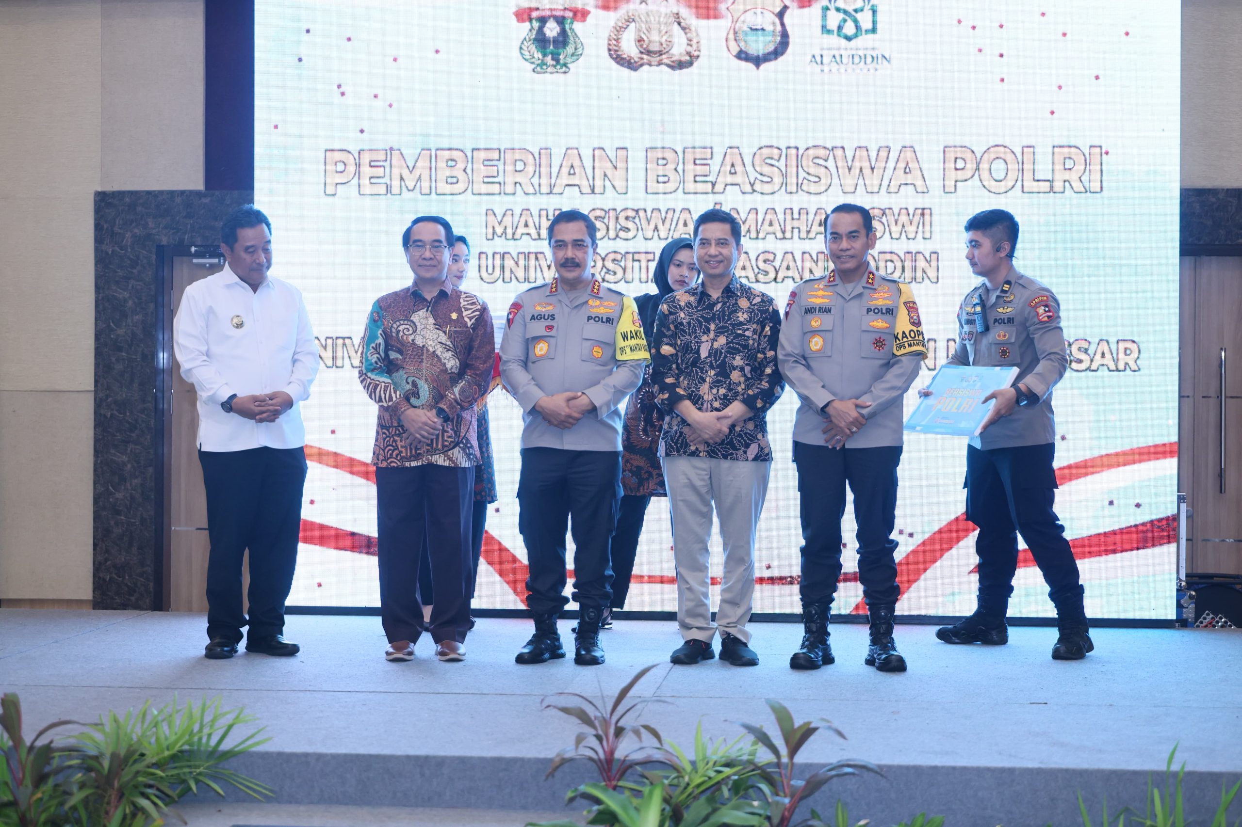 Beasiswa itu sendiri di serahkan Lansung Oleh Bapak Wakapolri Komjen. Pol. Drs. Agus Adrianto , S.H., M.H, dan Kapolda Sulsel Irjen Pol Andi Rian R Djajadi S.I.K, M.Si. keapda Mahasiswa/i Unhas Dan UIN Aaluddin Makassar.