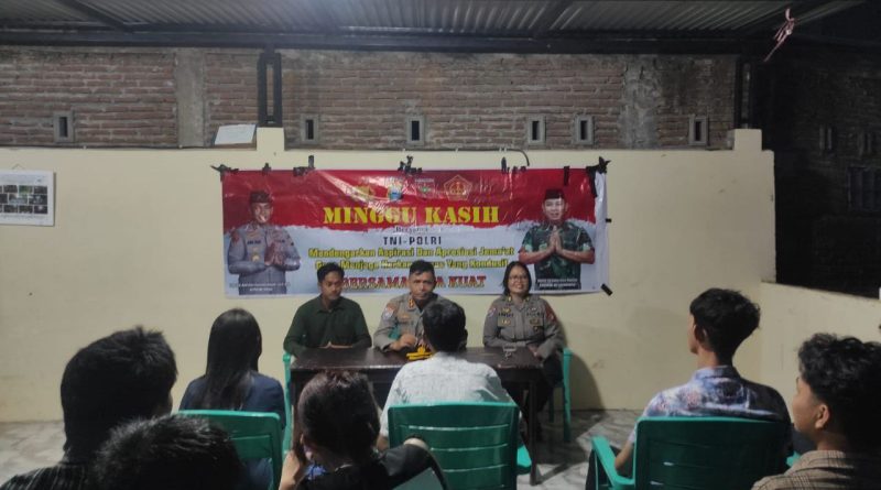 Kegiatan Minggu Kasih dalam rangka membangun sinergitas dengan Masyarakat di Gereja Toraja Jemaat Lanraki Kec. Tamalanrea Kota Makassar sekaligus mendengarkan keluhan, saran serta kritik, untuk membangun kinerja Polri yang lebih baik.