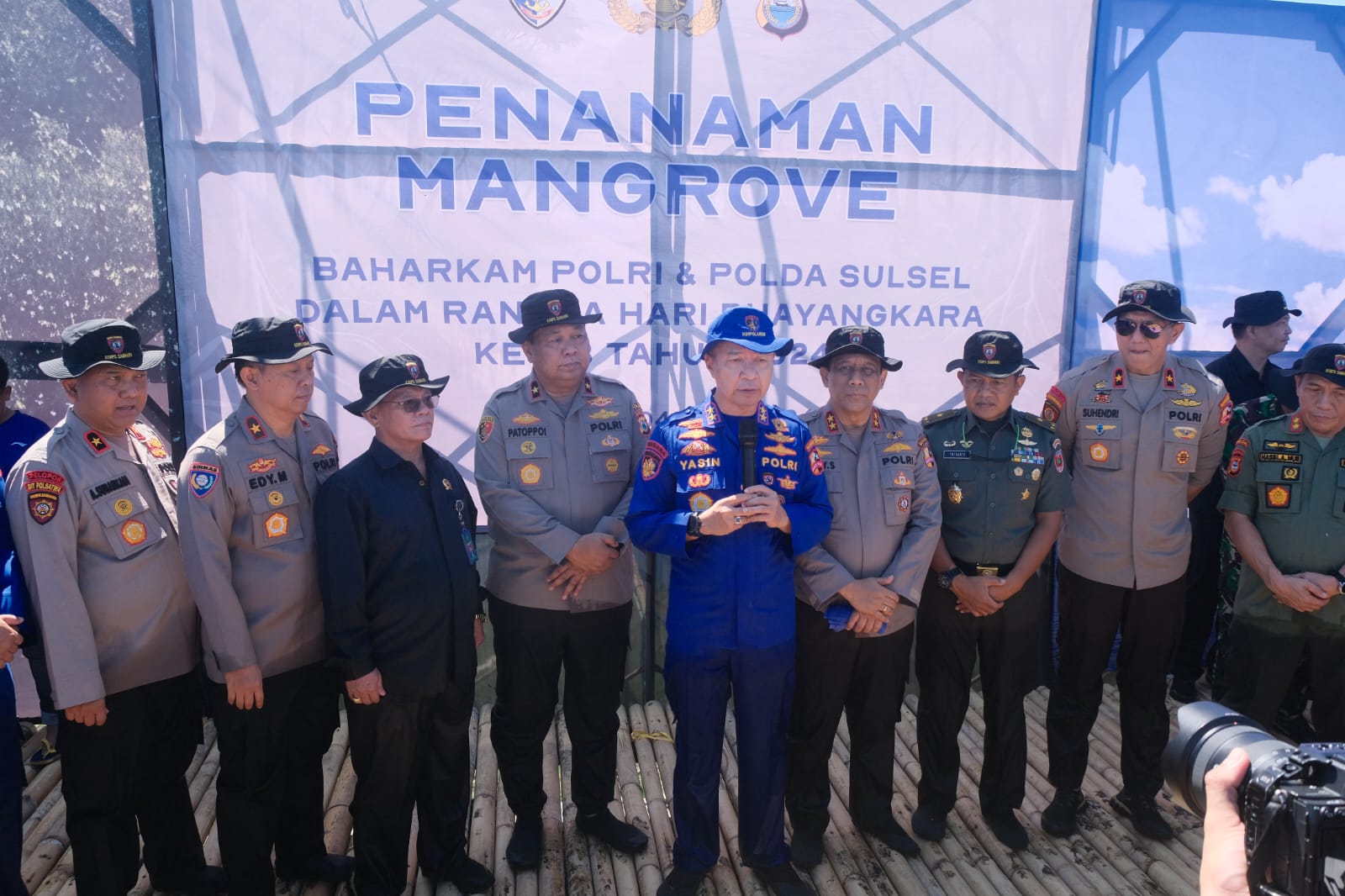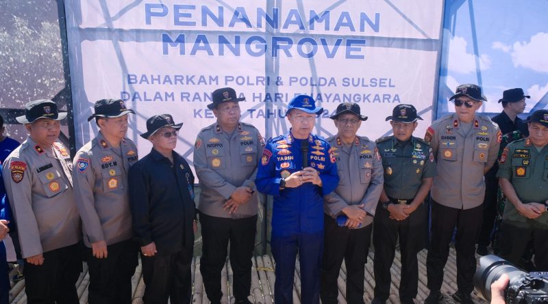 Kakorpolairud Baharkam Polri Irjen Pol M. Yassin Kosasih, S.I.K., M.Si., M.Tr.Opsla memimpin acara Bakti Sosial Penanaman Pohon Mangrove dalam rangka Hari Ulang Tahun (HUT) Bhayangkara ke-78 dan Rakernis Baharkam Polri di Pantai Takalar, Parialau Kabupaten Takalar, Selasa (04/06/24).
