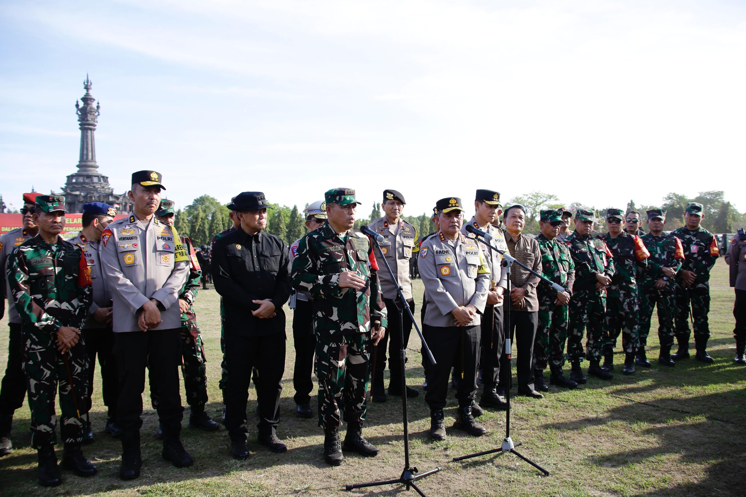 Apel gelar pasukan dipimpin langsung oleh Pangkogabwilhan II Marsekal Madya M. Khairil Lubis dan Kabaharkam Polri Komjen Pol Fadil Imran di Lapangan Renon, Denpasar, Bali, Jumat (30/8/2024).