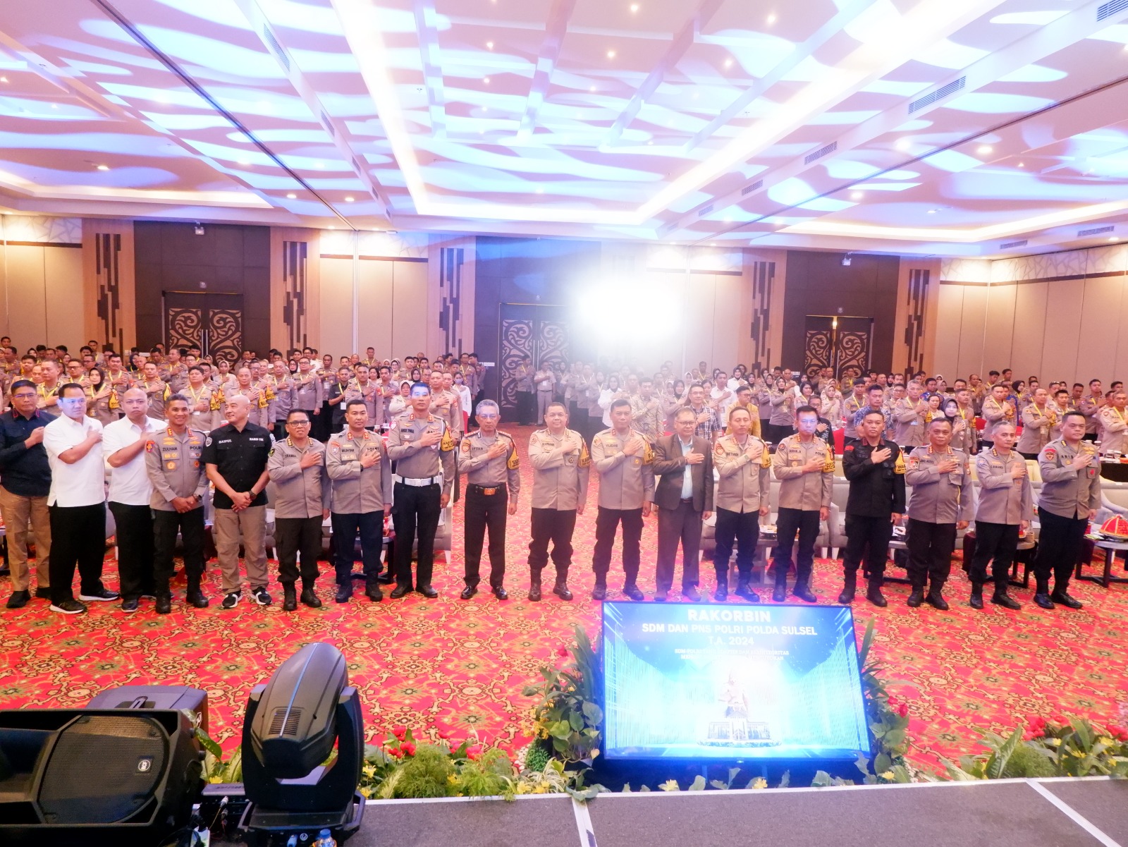 Kapolda Sulsel Irjen Pol. Yudhiawan S.H., S.I.K., M.H., M.Si., didampingi Pejabat Utama Polda Sulsel membuka secara resmi Rapat Koordinasi dan Pembinaan Sumber Daya Manusia (SDM) serta Pegawai Negeri Sipil (PNS) Polri Polda Sulsel Tahun Anggaran 2024. Kegiatan yang diadakan di Ballroom Balla Lompoa, Hotel Harper, Makassar,Kamis (31/10/24).