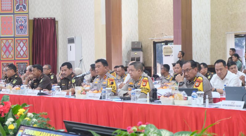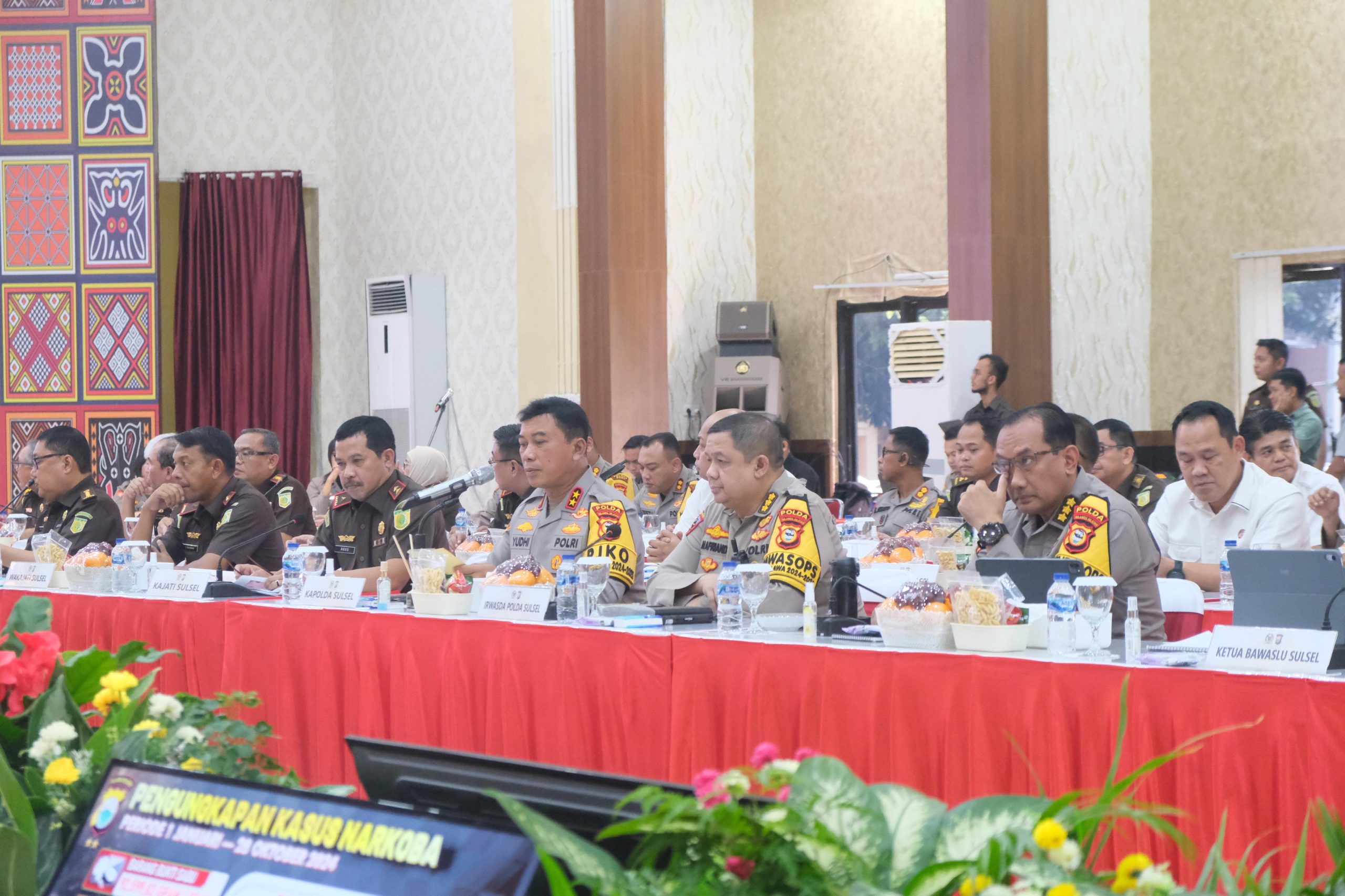 Turut hadir Wakapolda Sulsel, Wakajati Sulsel, Ketua Bawaslu Sulsel, Para PJU Polda Sulsel, Para PJU Kajati Sulsel, Para Komisioner Bawaslu.