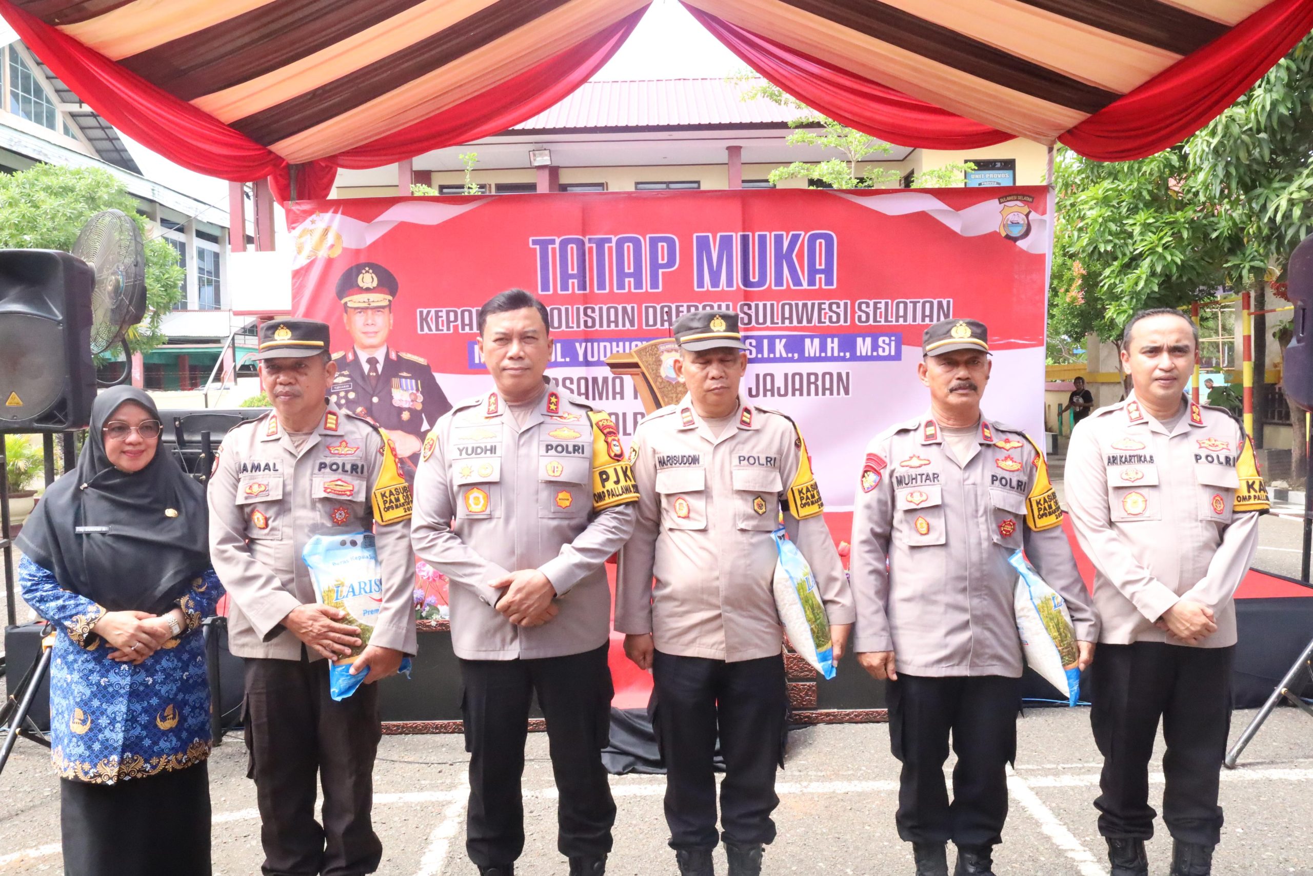 Kepala Kepolisian Daerah Sulawesi Selatan, Irjen Pol. Yudhiawan, S.H., S.I.K., M.H., M.Si., didampingi Ketua Bhayangkari Daerah Sulawesi Selatan Ny. Yunita Yudhiawan dan Pejabat Utama Polda Sulsel Melaksanakan Kujungan Kerja di Polres Pangkep, Senin (18/11/24).