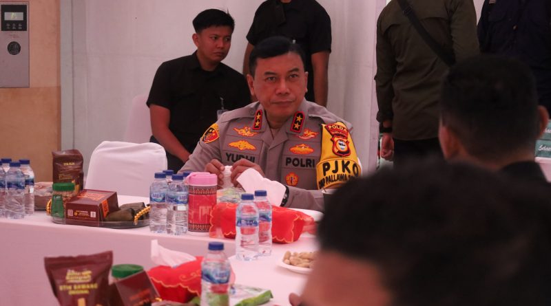 Makassar, 23 November 2024 – Kepala Kepolisian Daerah Sulawesi Selatan (Kapolda Sulsel), Irjen Pol. Yudhiawan, S.H., S.I.K., M.H., M.Si., bersama Wakapolda Sulsel beserta jajaran Pejabat utama Polda Sulsel, memantau langsung jalannya pengamanan Kampanye Akbar Calon Gubernur dan Wakil Gubernur Sulsel 2024 di Gedung Olahraga (GOR) Sudiang, Makassar, Sabtu (23/11/2024).
