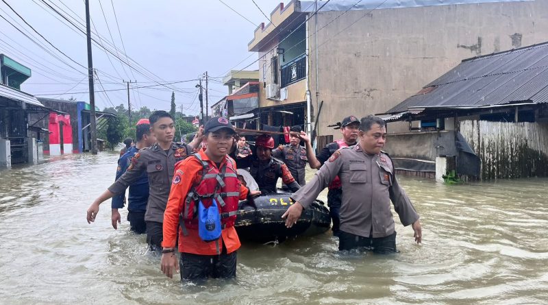 Gerak Cepat Pammat Subdit Gasum Polda Sulsel Evakuasi Korban Banjir di Makassar