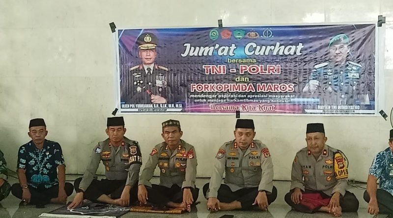 Jumat curhat bersama TNI-Polri dan Forkopimda Maros dipimpin Kapolda Sulsel Irjen Pol. Drs. Yudhiawan yang diwakili Wadir Binmas AKBP Andi Kumara.