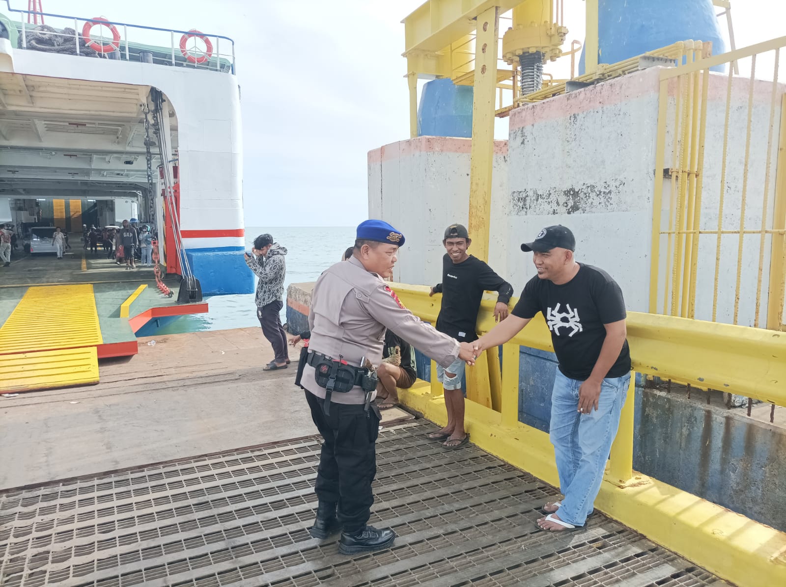 “Selain pengamanan, kami juga penyampaian himbauan keamanan dan ketertiban masyarakat (Kamtibmas) kepada para penumpang kapal ferry yang berada diterminal pelabuhan sebelum naik diatas kapal,” jelas Kasat.