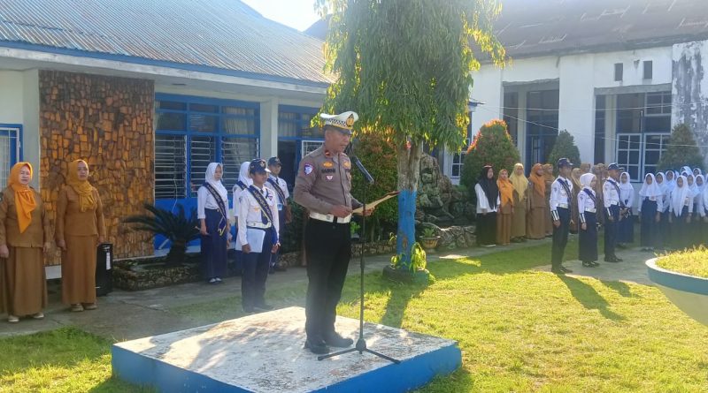 BONE – Satlantas Polres Bone melaksanakan Police Goes To School di SMP Negeri 7 Watampone, Jalan Yos Sudarso Kelurahan Bajoe, Kecamatan Tanete Riattang Timur Kabupaten Bone, Senin pagi (26/5/2025).