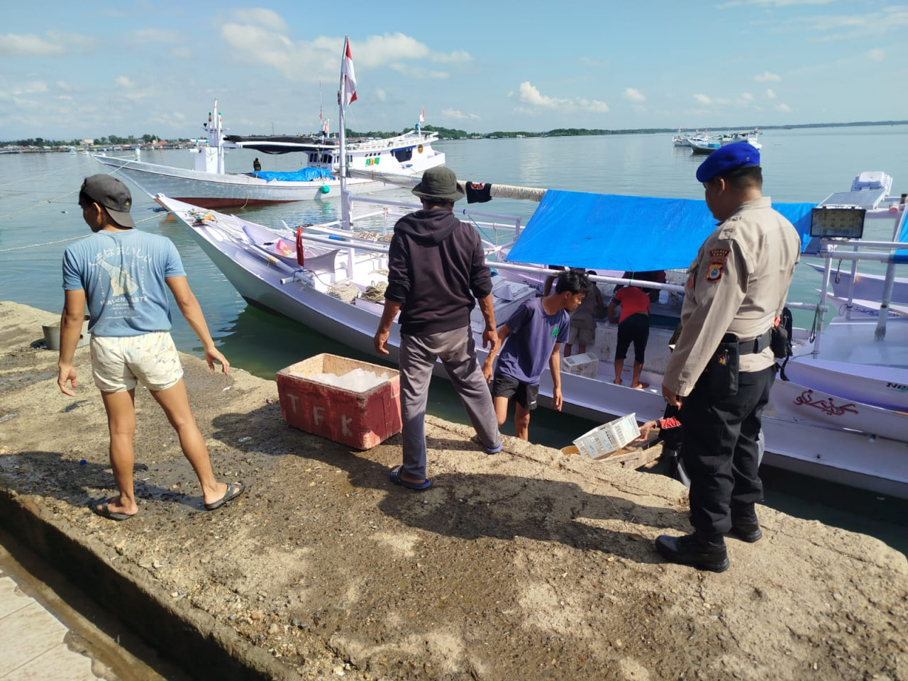 Personel Piket Markas Satpolairud Polres Bone Pantau Aktivitas Nelayan Di PPI Lonrae