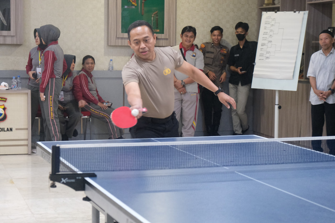 Semarak HUT Bhayangkara ke-79, Polda Sulsel Gelar Pertandingan Tenis Meja Antar Satker dan Pejabat Utama