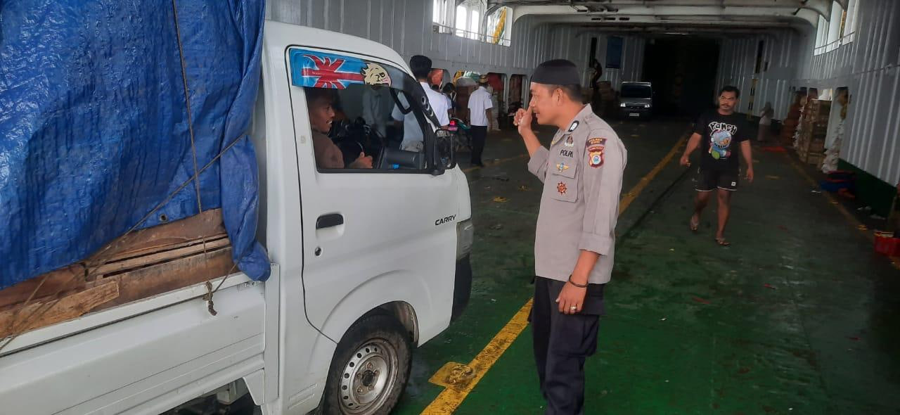 Pastikan administrasi pelayaran pada kendaraan yang akan dimuat di Kapal Ferry baik roda empat dan roda dua, Personil Polsek Kawasan Pelabuhan Bajoe mendampingi karyawan Kapal saat lakukan pemeriksaan dan pengaturan kendaraan. Selasa, (24/06/2025).