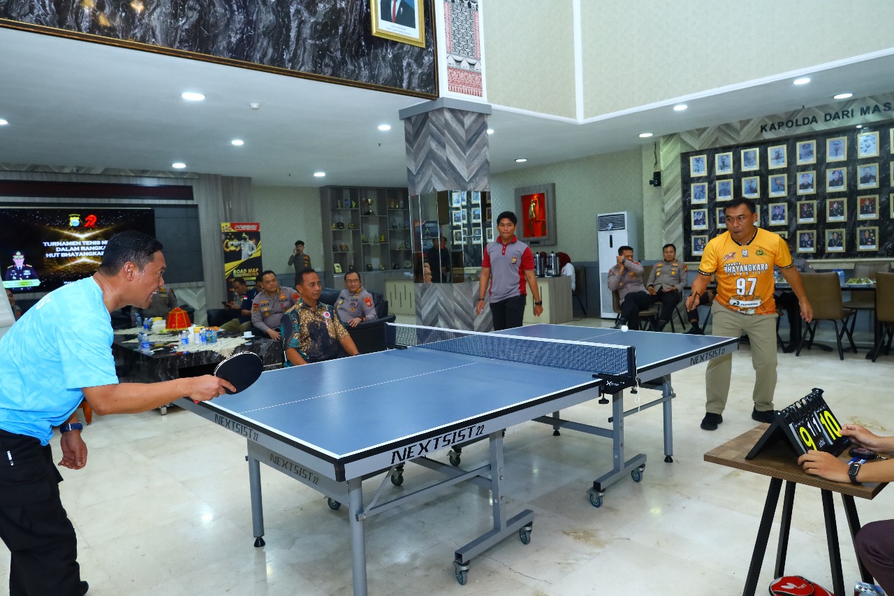Dalam rangka memeriahkan Hari Bhayangkara ke-79, Kepolisian Daerah Sulawesi Selatan (Polda Sulsel) menggelar pertandingan tenis meja antar Pejabat Utama (PJU) dan Satuan Kerja (Satker) di lingkungan Polda Sulsel. Kegiatan ini berlangsung meriah pada Kamis (26/06/2025) di Mapolda Sulsel.