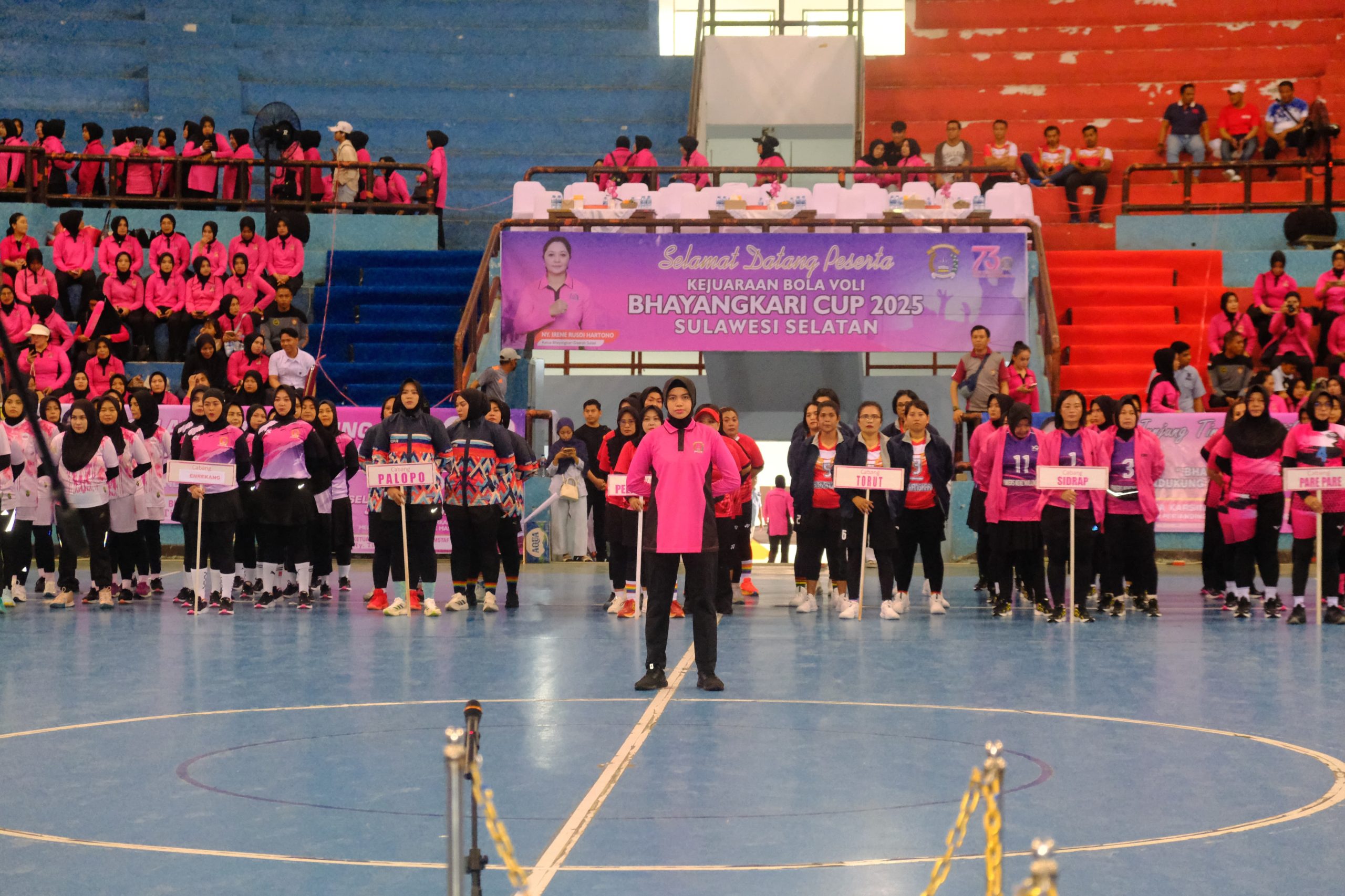 Makassar – Kapolda Sulawesi Selatan, Irjen Pol. Drs. Rusdi Hartono, M.Si., didampingi Ketua Bhayangkari Daerah Sulsel, Ny. Irena Rusdi Hartono, menghadiri Upacara Pembukaan Turnamen Bola Voli Bhayangkari se-Daerah Sulsel yang digelar di Lapangan Voli GOR Sudiang, Kota Makassar, Selasa, 15 Juli 2025.