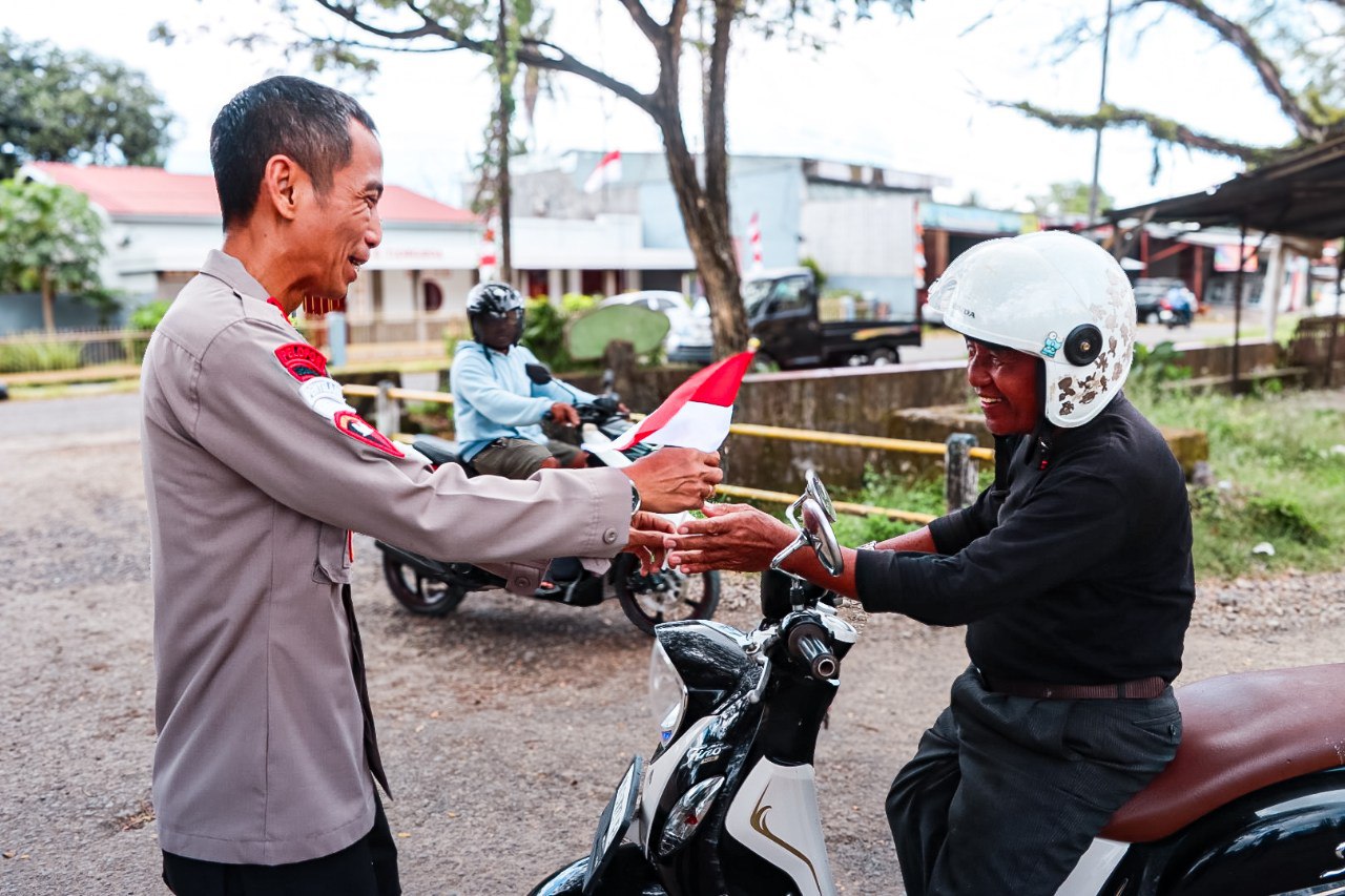 Aksi pembagian bendera ini merupakan bagian dari kampanye “Merah Putih Serentak” yang digalakkan Polri bersama pemerintah sebagai wujud cinta tanah air dan semangat nasionalisme menyambut HUT RI ke-80.