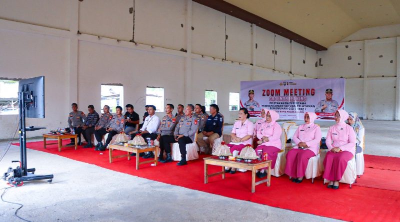 Bone, Kapolres Bone AKBP Sugeng Setio Budhi, S.I.K., M.Tr.Opsla bersama para Pejabat Utama Polres Bone dan Pengurus Bhayangkari Cabang Bone menghadiri Zoom Meeting Groundbreaking Pembangunan Satuan Pelayanan Pemenuhan Bergizi (SPPG) yang dilaksanakan secara virtual oleh Mabes Polri, Rabu (6/8/2025).