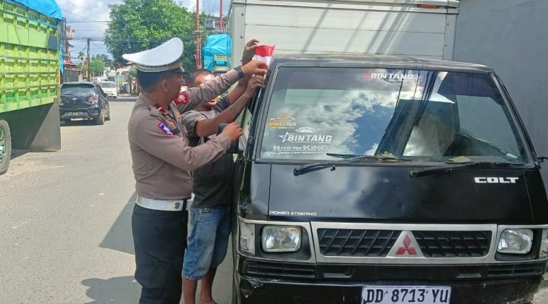 Aksi Simpatik Satlantas Polres Bone, Bagi Bendera, Bangkitkan Nasionalisme