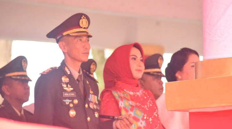 BONE – Kapolres Bone AKBP Sugeng Setio Budhi, S.IK., M.Tr.Opsla bersama Ketua Bhayangkari Cabang Bone Ny. Shita Sugeng menghadiri upacara pengibaran bendera merah putih dalam rangka memperingati Hari Ulang Tahun (HUT) ke-80 Kemerdekaan Republik Indonesia yang berlangsung di Lapangan Merdeka Watampone, Ahad (17/8/2025).