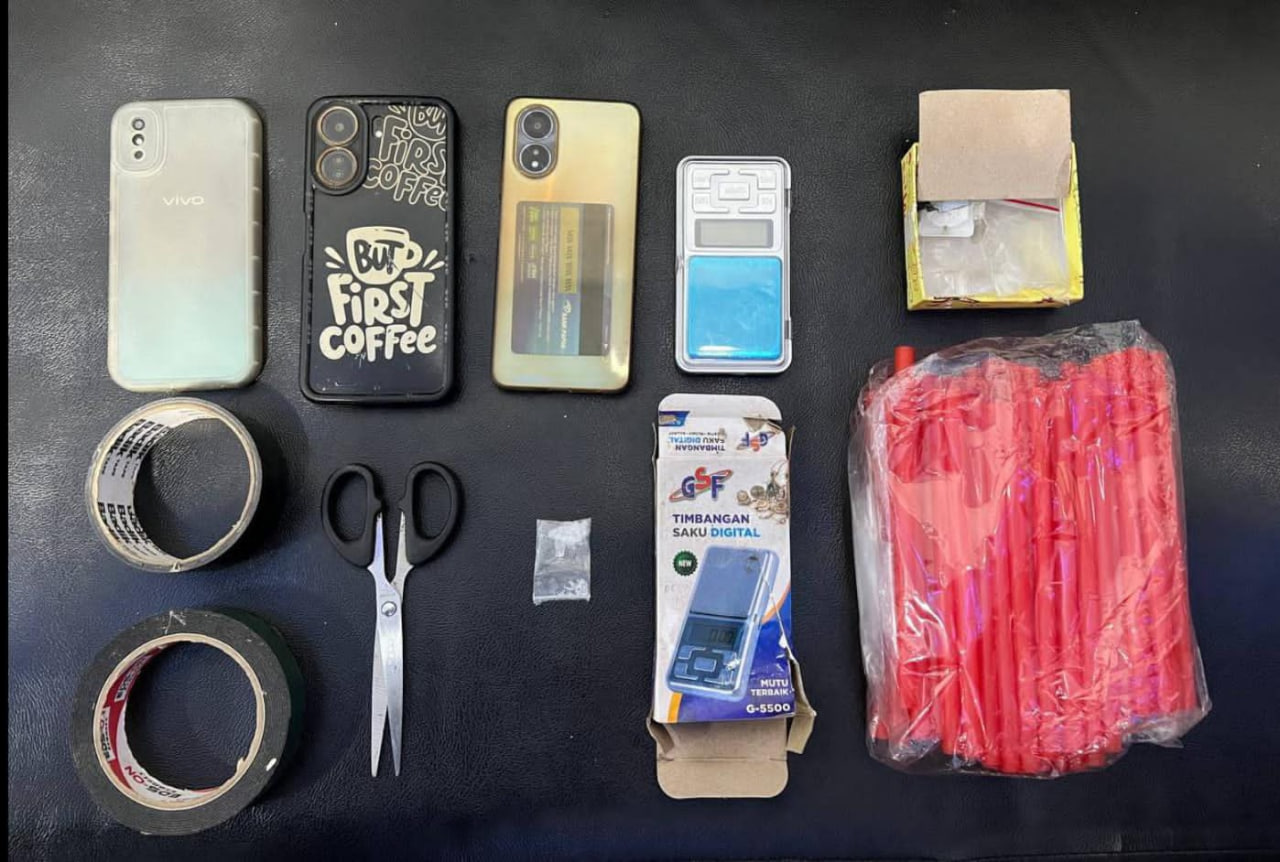 Kedua terduga pelaku ditangkap di dalam rumah AY saat tengah memiliki dan menyimpan narkotika jenis sabu. Dari penggeledahan, petugas mengamankan sejumlah barang bukti, antara lain: