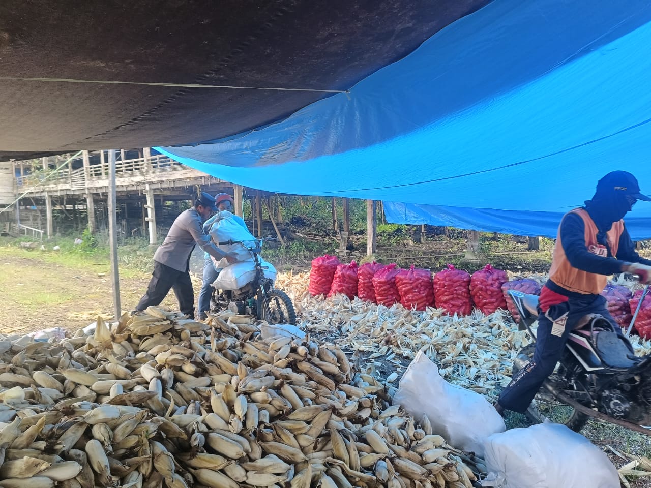 Polisi Penggerak Aiptu Herman Dampingi Masyarakat Panen Jagung di Desa Ureng