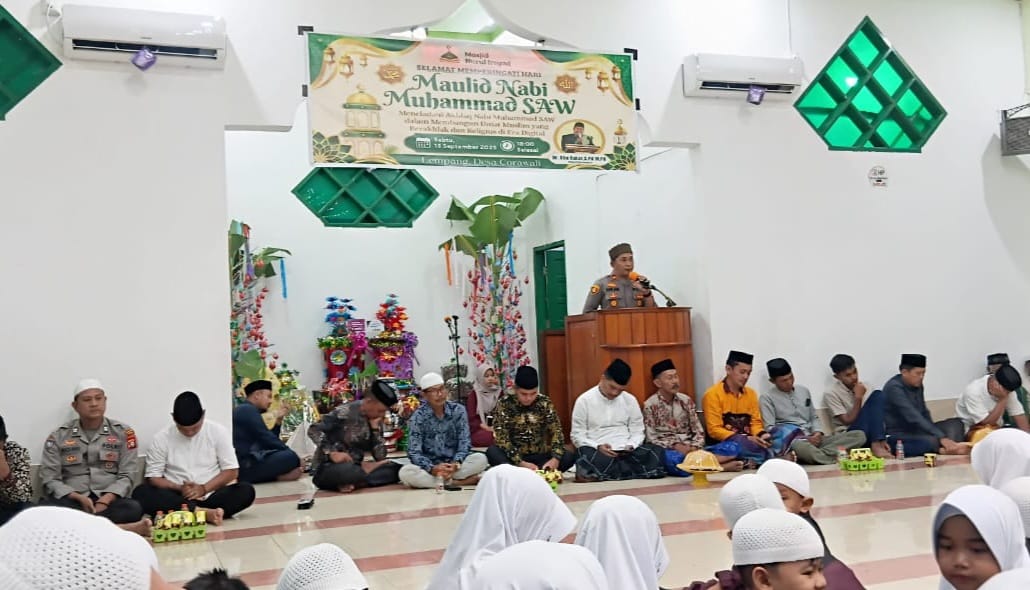 BONE – Apala Kapolsek Barebbo Iptu Muhammad Arif SH berpartisipasi aktif dalam Peringatan Maulid Nabi Muhammad SAW di Masjid Nurul IRsyad Dusun Lempang Desa Corawali Kecamatan Barebbo minggu malam (13 /9/2025) mulai pukul 20.15 wit hingga 23.00 WIt Acara berlangsung aman, lancar, dan kondusif.