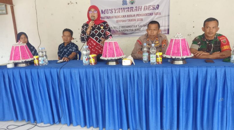 Bone – Kapolsek Salomekko, AKP Darfin Tahrir, S.H., menghadiri kegiatan Musyawarah Desa (Musdes) Penetapan Rencana Kerja Pemerintah Desa (RKPDes) Tahun Anggaran 2026 yang diselenggarakan di Desa Bellu, Kecamatan Salomekko, Kabupaten Bone.