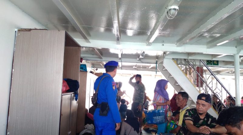 Bone-Bajoe. Personil piket Satpolairud Polres Bone melakukan pemantauan aktivitas penyeberangan dan menemui para calon penumpang kapal ferry yang sedang menunggu keberangkatan kapal, Rabu (01/10/2025) siang.