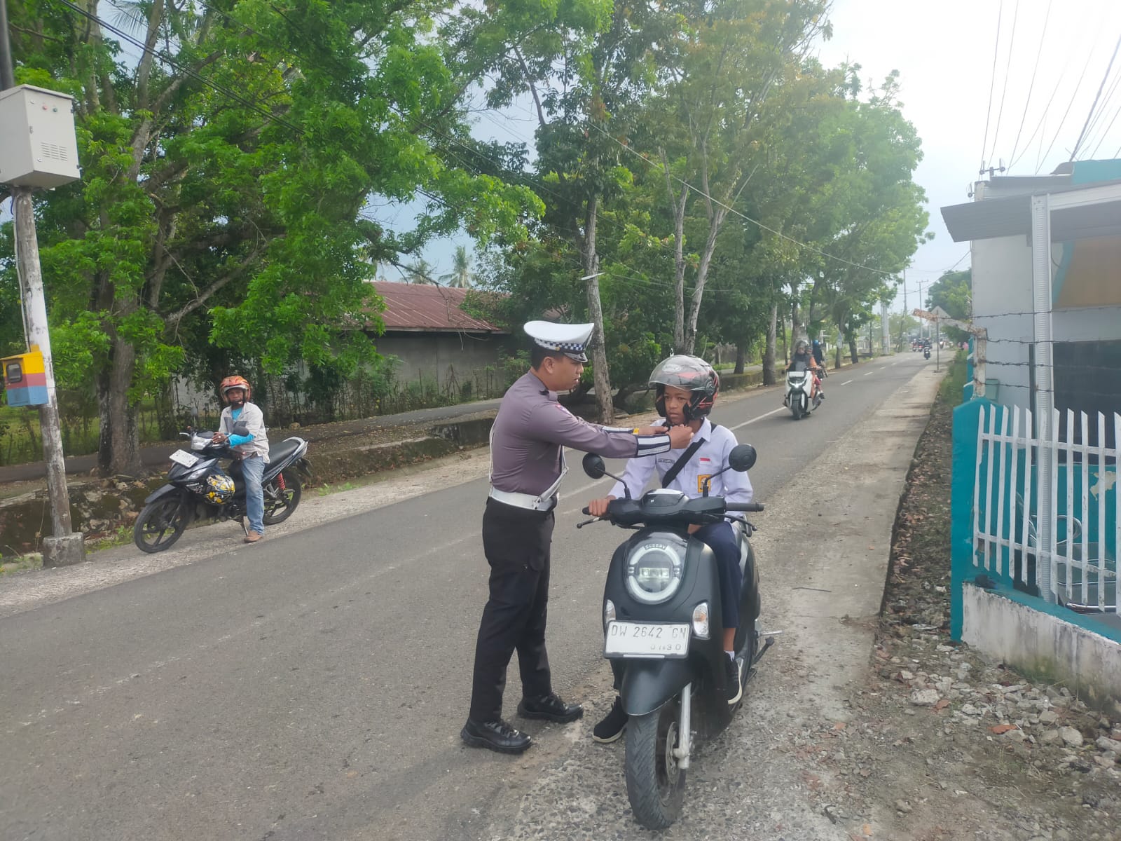 BONE – Dalam pelaksanaan gatur pagi ini, personel Satlantas Polres Bone dapati senumlah anak yang masih dibawah umur sedang melintas mengendarai sepeda motor dan tak menggunakan kelengkapan berkendara seperti helm, Senin pagi (6/10/2025).