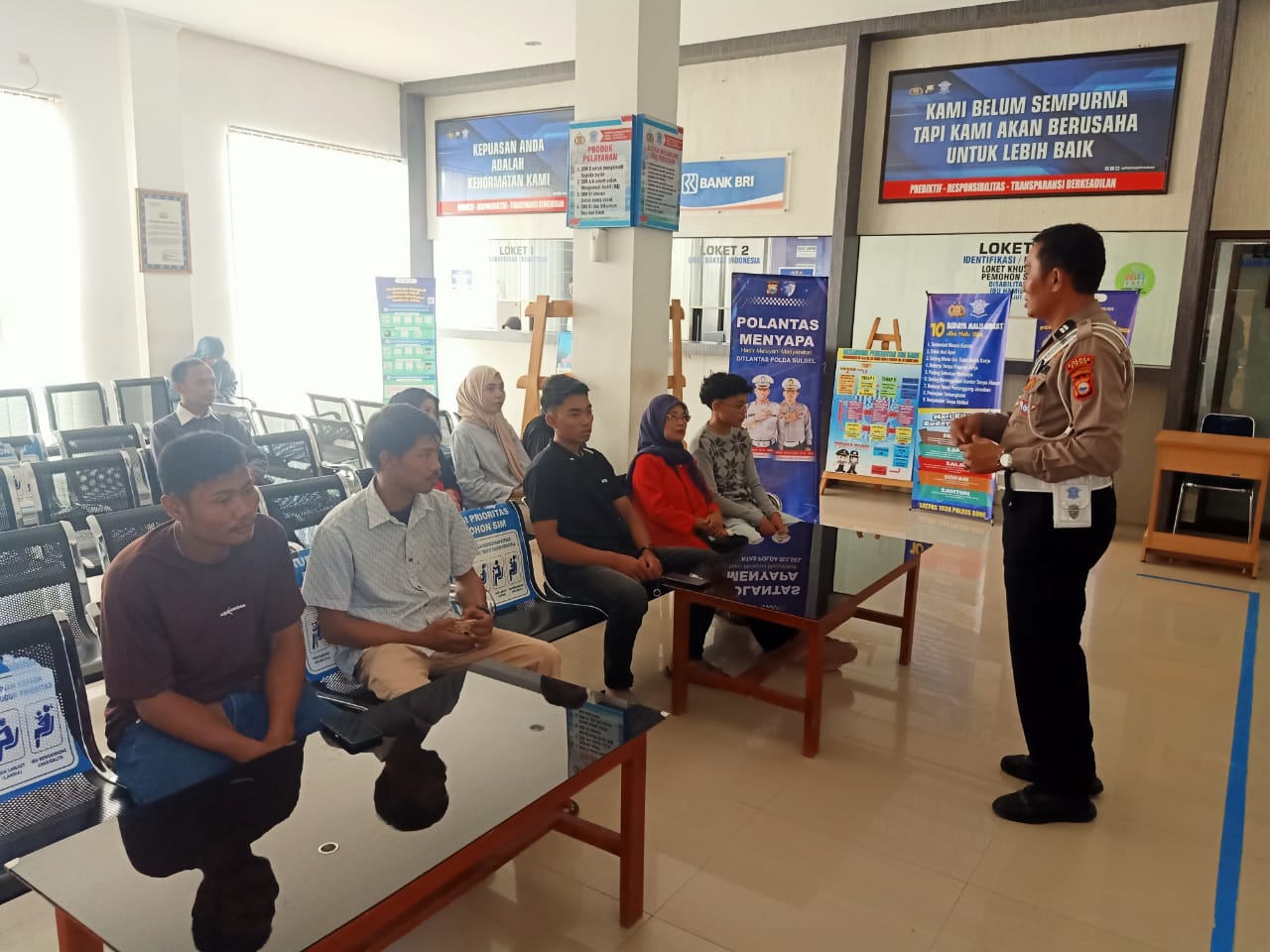 Personel memberikan edukasi serta imbauan terkait keselamatan, keamanan, ketertiban, dan kelancaran lalu lintas terhadap pemohon SIM.