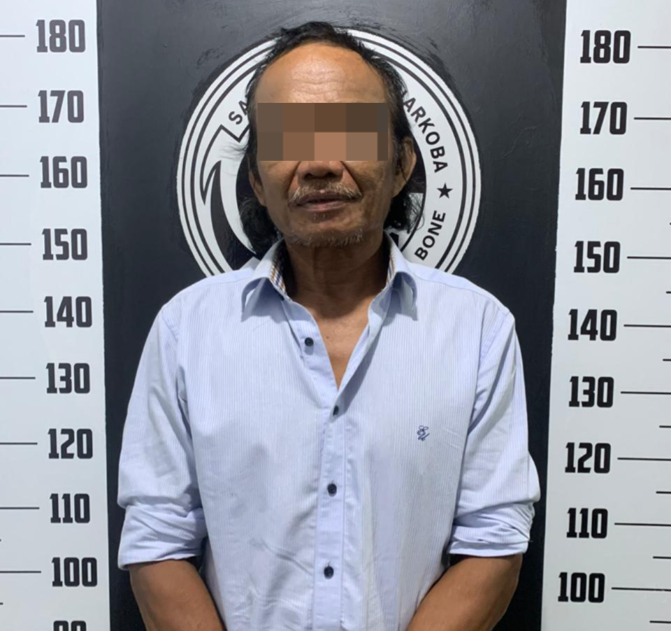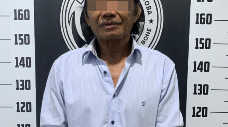 Pelaku yang diketahui berinisial A.RS (60), warga Jalan Beringin, Kelurahan Watampone, Kecamatan Tanete Riattang, Kabupaten Bone, ditangkap saat berada di halaman rumah salah seorang warga.