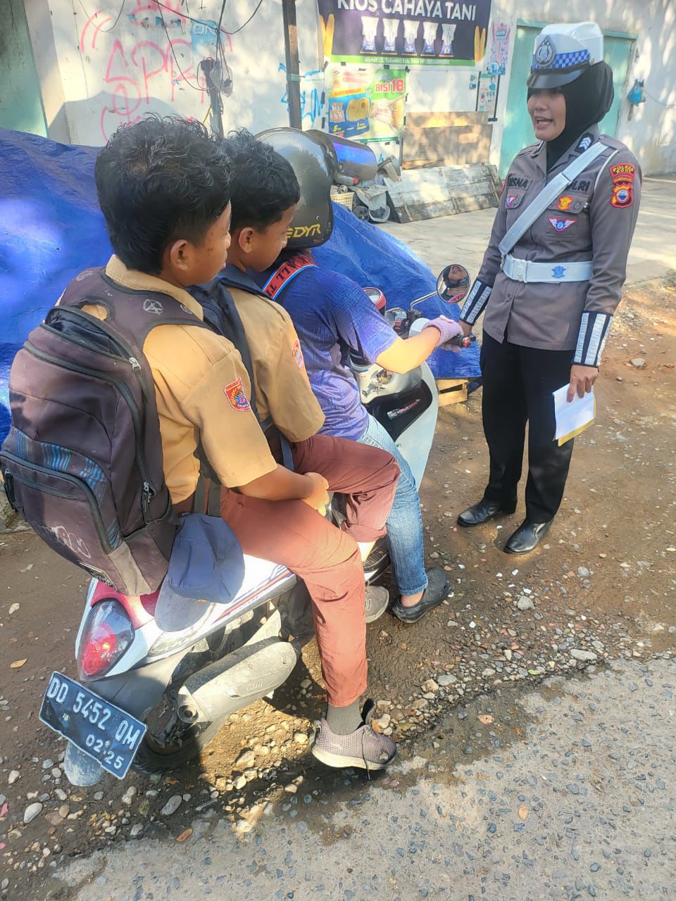 Dengan simpatik personel memberikan tilang teguran dan memberikan edukasi tentang pentingnya penggunaan helm untuk keselamatan dan diimbau agar tidak mengendarai sepeda motor bonceng tiga.