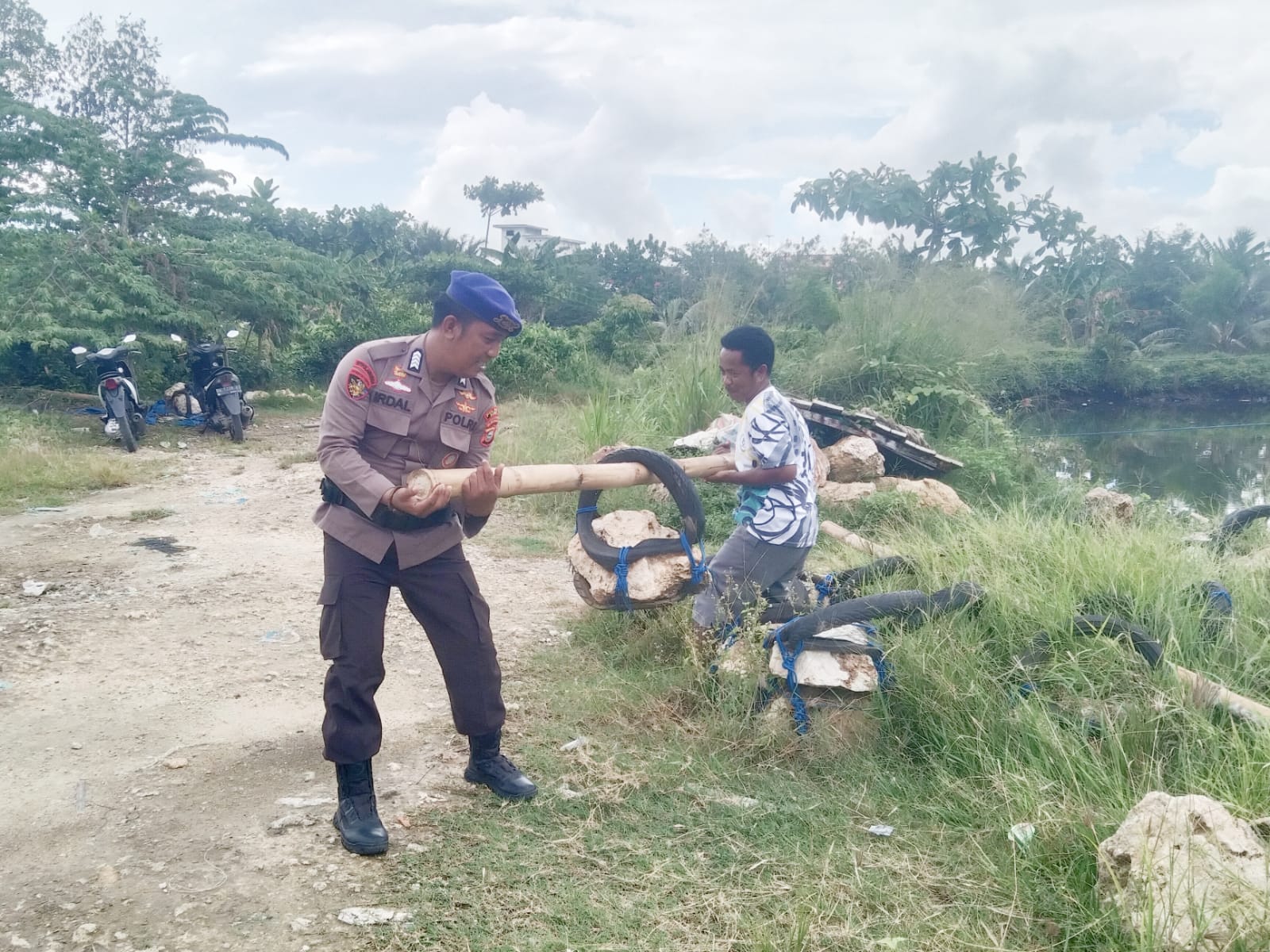 Layani Masyarakat, Personel Satpolairud Polres Bone Bantu Nelayan Angkat Batu Rumpon