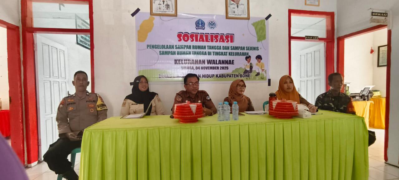 Bone – Manurunge, Bertempat di Kantor Kelurahan Walannae, Jalan Urip Sumoharjo, Kecamatan Tanete Riattang, Kabupaten Bone, telah dilaksanakan kegiatan sosialisasi pengelolaan sampah rumah tangga dan sampah sejenisnya oleh pihak Dinas Lingkungan Hidup (DLH) Kabupaten Bone, “Selasa (04/11/2025)