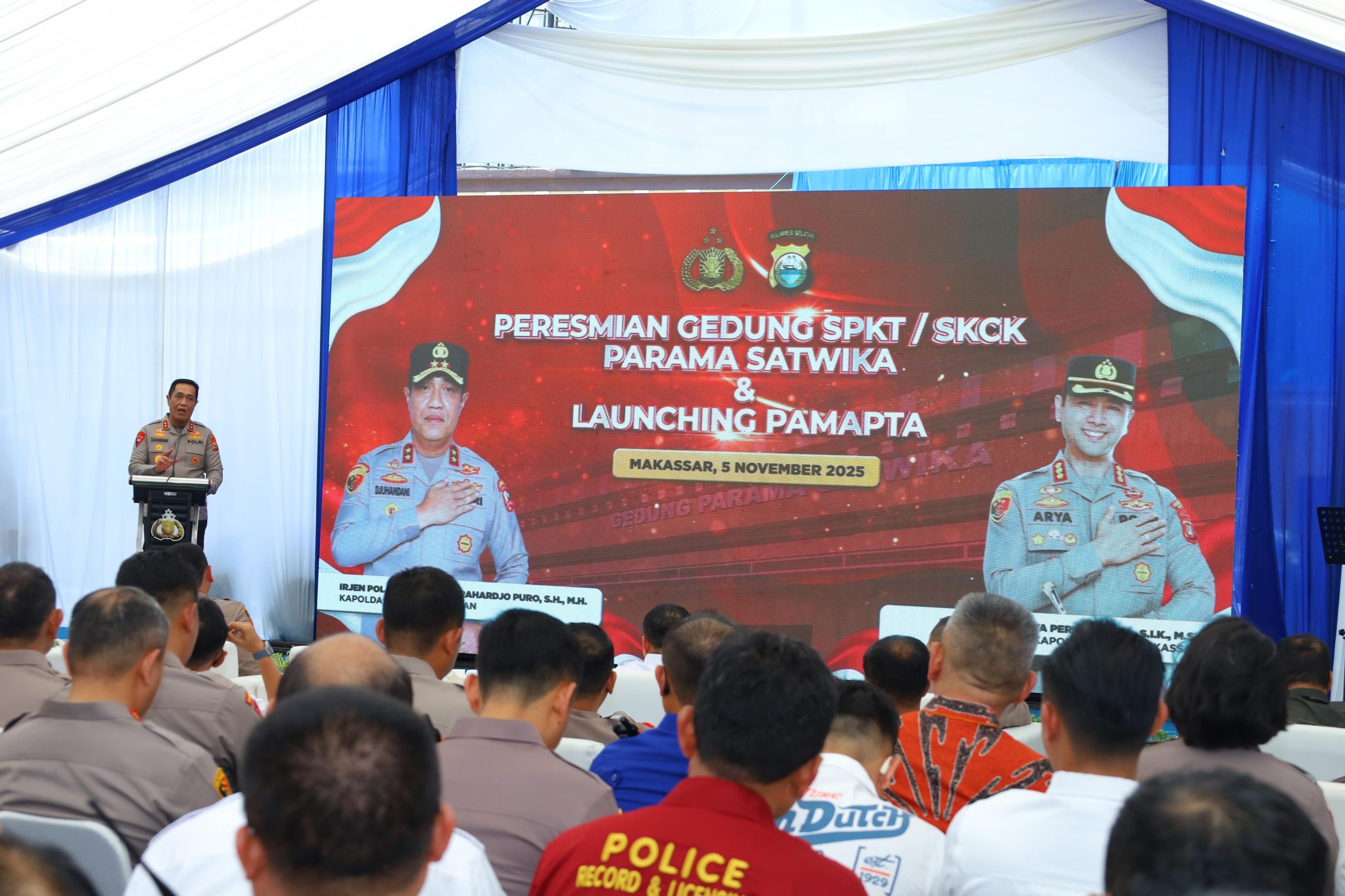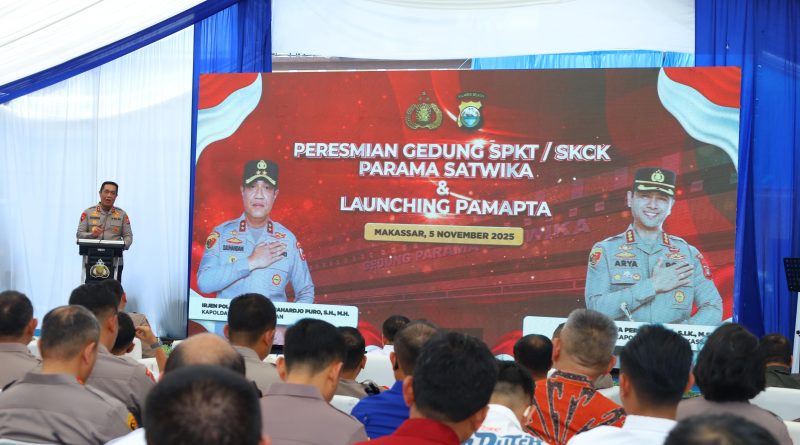 Kepolisian Daerah Sulawesi Selatan kembali menorehkan langkah konkret dalam meningkatkan kualitas pelayanan publik. Kapolda Sulawesi Selatan, Irjen Pol. Djuhandhani Rahardjo Puro, S.H., M.H., meresmikan Gedung SPKT dan SKCK “Parama Satwika” serta secara resmi meluncurkan Satuan Pamapta Polrestabes Makassar, bertempat di Mako Polrestabes Makassar, Rabu (5/11/2025).