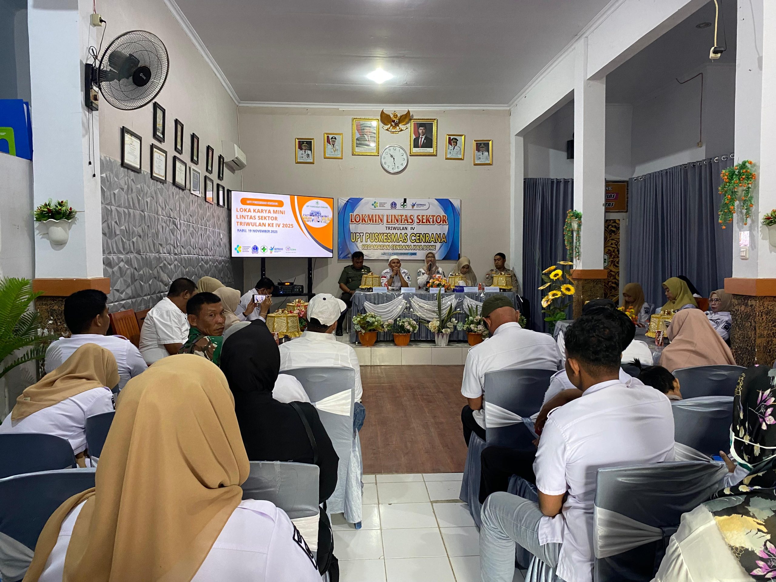 Bone – Cenrana. Kanit Binmas Polsek Cenrana Polres Bone Aipda Mulyadi Wakili Kapolsek Cenrana hadiri kegiatan Loka Karya Mini (Lokmin) Lintas Sektor Triwulan IV Tahun 2025 yang dilaksanakan di aula Puskesmas Cenrana. Rabu (19/11/2025).