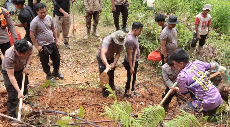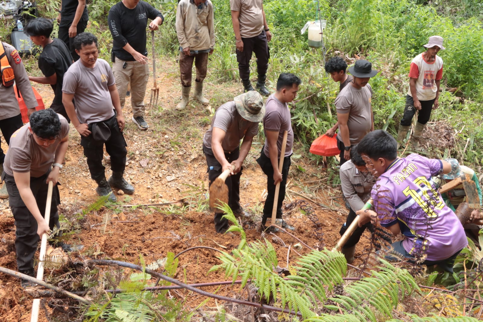 Polres Sidrap bersama pemerintah desa dan masyarakat setempat turun langsung membuka akses jalan yang tertutup akibat bencana longsor di Desa Leppangeng, Kecamatan Pitu Riase, Kabupaten Sidenreng Rappang (Sidrap), Senin (22/12/2025).