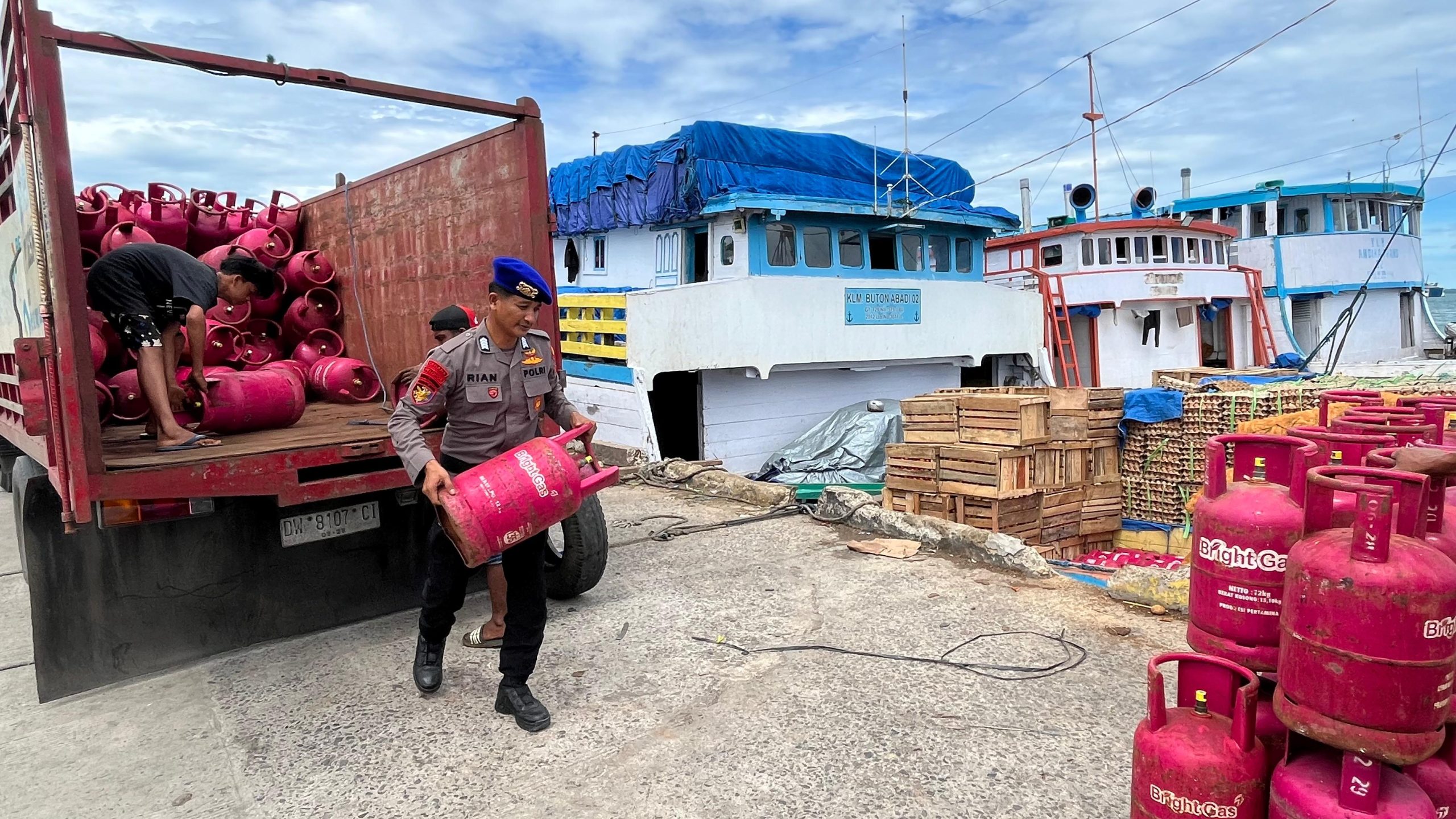 Dalam kegiatan tersebut, Bripka Sukri mengimplementasikan tugas sebagai Polisi Penolong melalui pendekatan humanis, Bripka Sukri membantu masyarakat dalam proses bongkar muat barang dari mobil ke atas kapal.