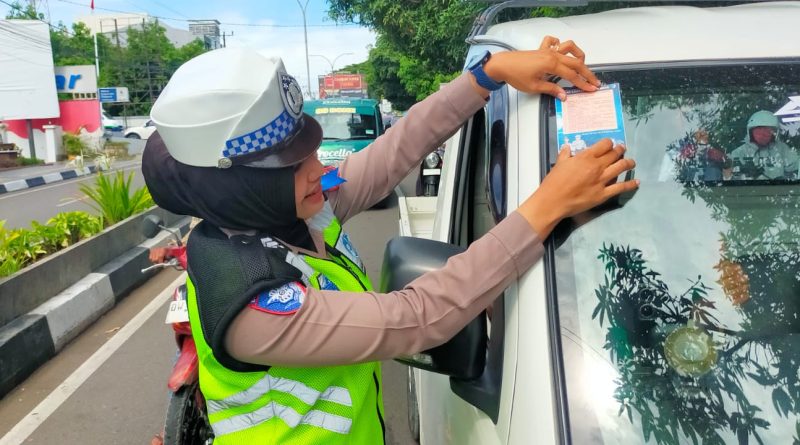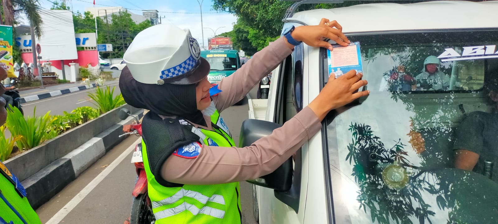 Dalam kegiatan tersebut petugas memberikan imbauan serta memasang stiker dan membagikan brosur yang berisikan pelanggaran perioritas kepada Pengendara.