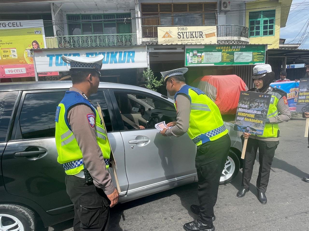 Dalam suasana yang interaktif, personel Satlantas memberikan edukasi mendalam kepada para pengguna jalan yang melintas