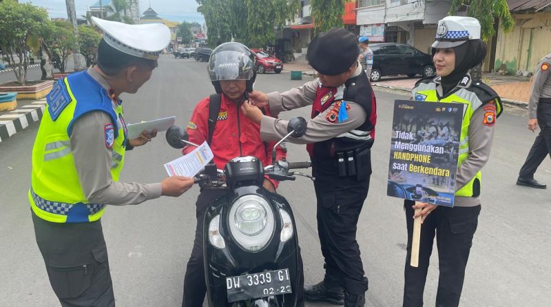 Dalam Operasi Keselamatan Pallawa 2026 hari kedelapan, di Jalan Petta Ponggawae Watampone, Kabupaten Bone. Petugas menggelar aksi sosialisasi dan imbauan kepada pengguna jalan.