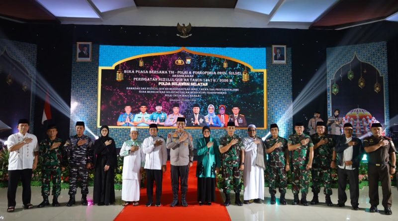 Polda Sulsel Gelar Buka Puasa Bersama TNI-Polri dan Forkopimda Sulsel, Dirangkaikan Peringatan Nuzulul Qur’an 1447 H/2026 M