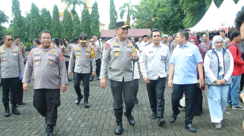 Kapolda Sulawesi Selatan Irjen Pol. Djuhandhani Rahardjo Puro, S.H., M.H., bersama Wakil Ketua II DPRD Sulsel Yasir Machmud, meninjau langsung pelaksanaan bazar dan gerakan pangan murah yang dilaksanakan di Mapolda Sulsel.