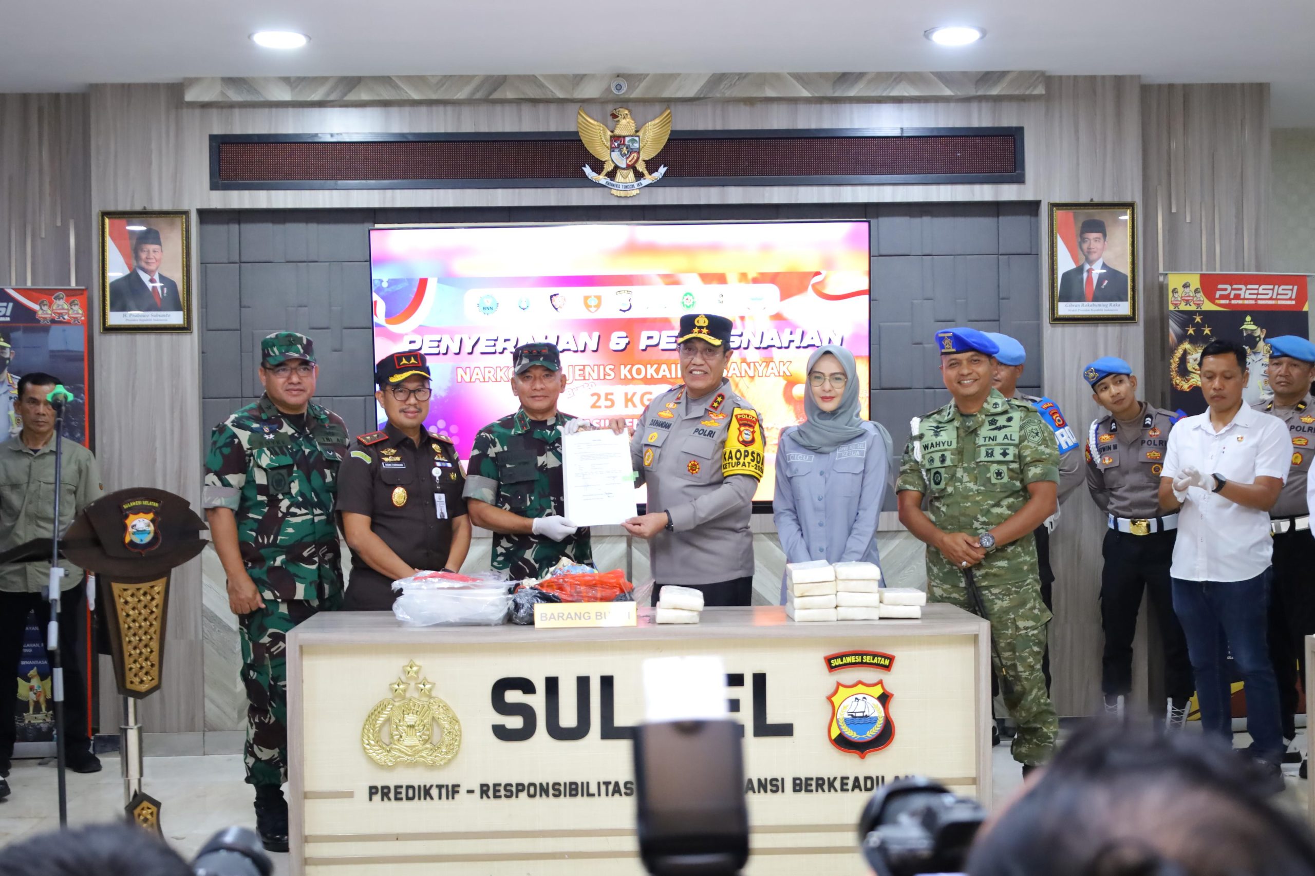 Kepolisian Daerah Sulawesi Selatan (Polda Sulsel) melaksanakan pemusnahan barang bukti narkotika jenis kokain dengan berat bruto 25 kilogram di Mapolda Sulsel, Senin (16/03/2026). Kegiatan ini merupakan tindak lanjut dari penyerahan barang temuan oleh Kodam XIV/Hasanuddin kepada Polda Sulsel untuk proses hukum lebih lanjut.