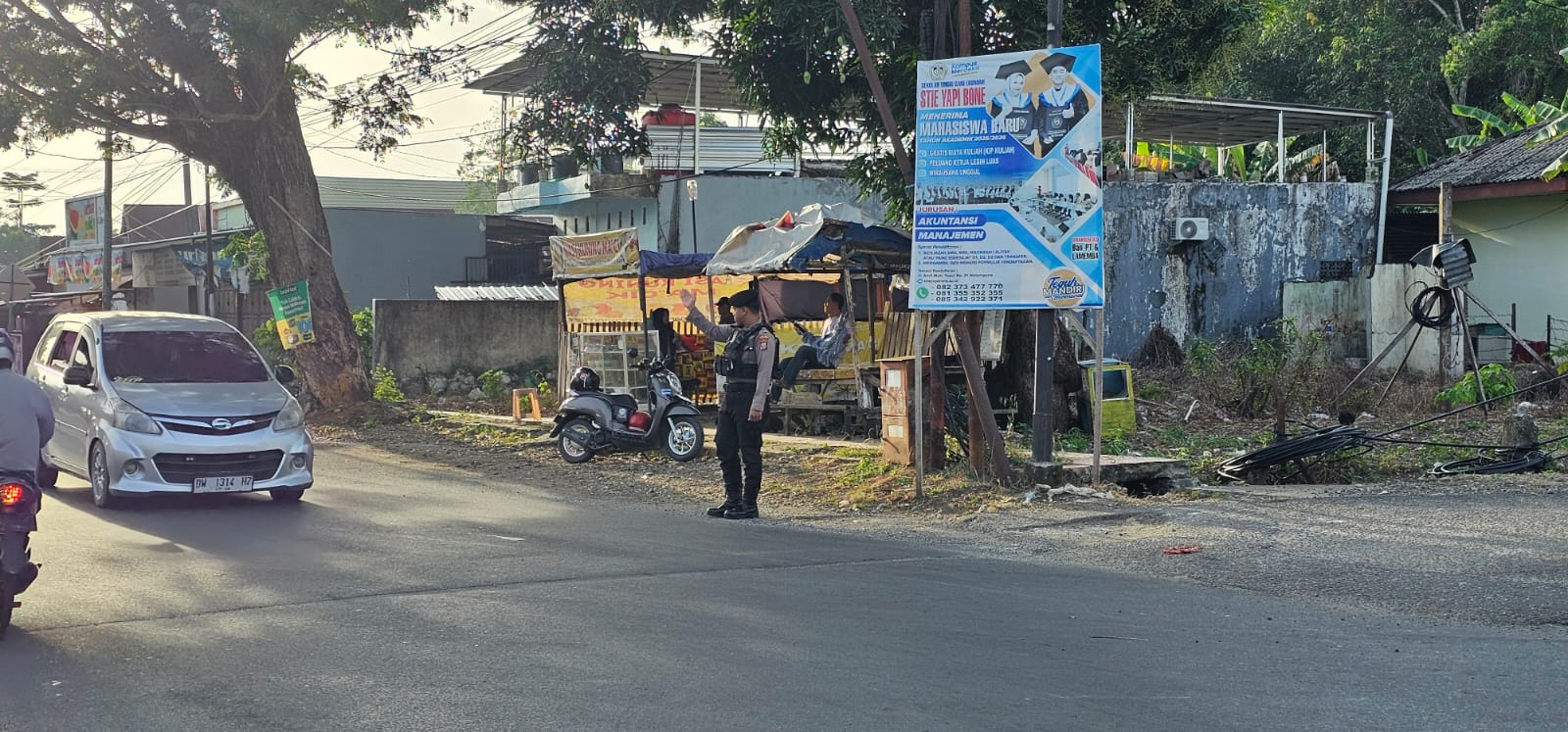 Personel Sat Samapta Polres Bone Polda Sulawesi Selatan laksanakan pengaturan pagi dan himbauan lalu lintas di Kota Watampone, Jumat (24/04/2026).