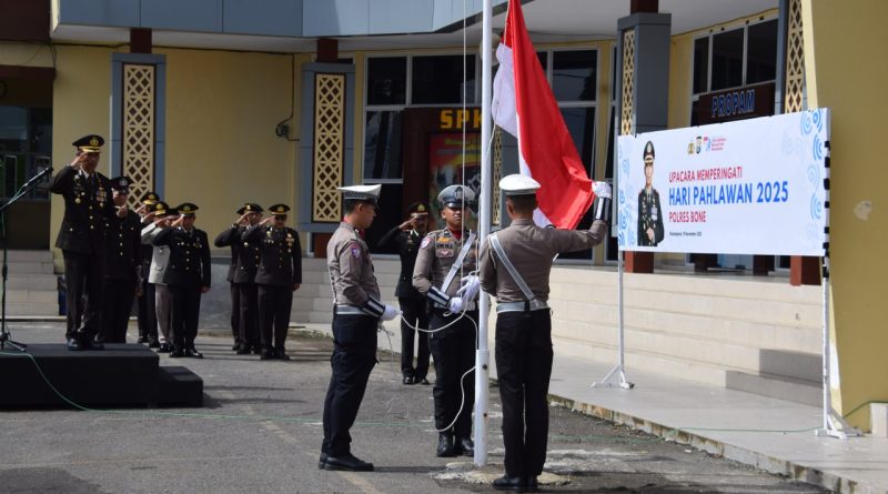 Watampone,— Polres Bone Polda Sulsel menggelar Upacara Peringatan Hari Pahlawan Tahun 2025 di halaman Mapolres Bone. Kegiatan berlangsung khidmat dengan
